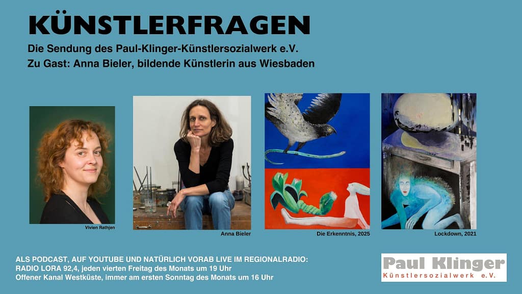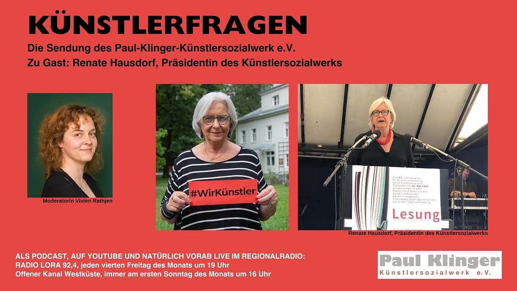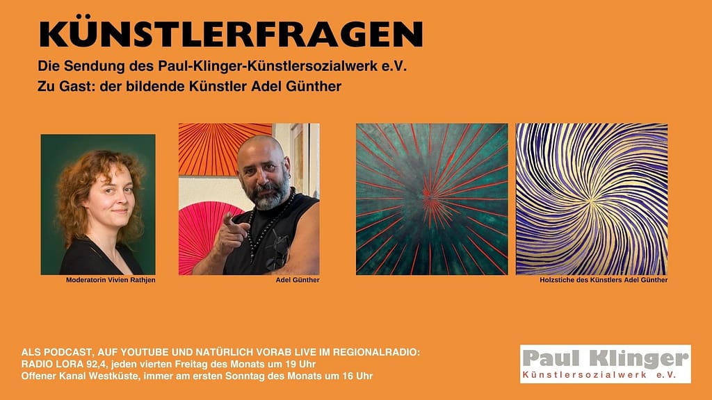 Das Interview läuft am Freitag, 22. August um 19 Uhr auf Radio Lora 92,4 und am Sonntag, 07. September 2025 um 16 Uhr auf Radio Westküste. Danach kann man die Sendung auf dem Spotify-Kanal oder den YouTube-Kanal des Paul Klinger Künstlersozialwerks anhören.