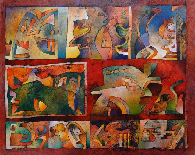 Zeichen, Anzeichen – nennt der Maler Helmut Bernhardt seine aktuelle Ausstellung.