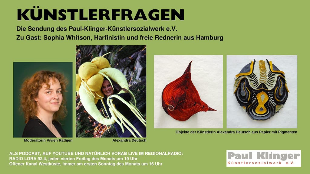 Das Interview läuft am Freitag, 22. August um 19 Uhr auf Radio Lora 92,4 und am Sonntag, 07. September 2025 um 16 Uhr auf Radio Westküste. Danach kann man die Sendung auf dem Spotify-Kanal oder den YouTube-Kanal des Paul Klinger Künstlersozialwerks anhören.